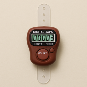 A Japa counter is a device or tool used to keep track of the number of times a mantra, prayer, or divine name is chanted. The term “Japa” refers to the meditative repetition of a mantra or divine name. It is a common practice in many spiritual traditions, particularly in Hinduism and Buddhism.